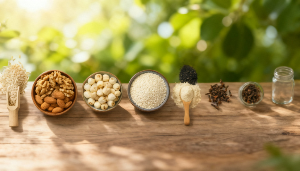 • Mè & sắn dây: Cung cấp khoáng chất và vị ngọt tự nhiên, dễ tiêu hóa.
