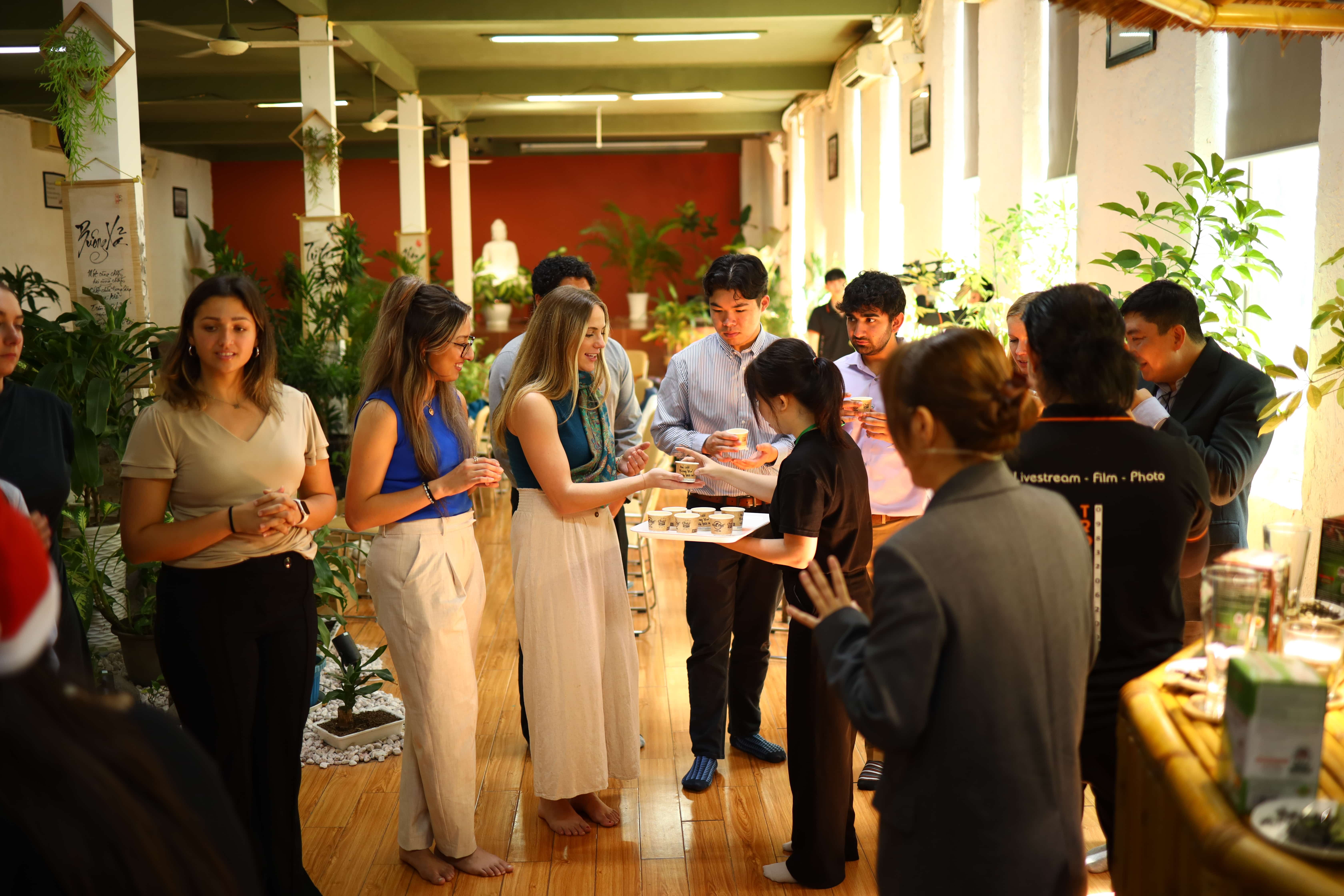 Không khí Giáng sinh tại Trà Hùng Phát - Chay Ngon năm nay thêm phần ý nghĩa khi công ty tổ chức một sự kiện tham quan thực tế đầy ấn tượng cho đoàn sinh viên từ Trường Đại học Georgia.