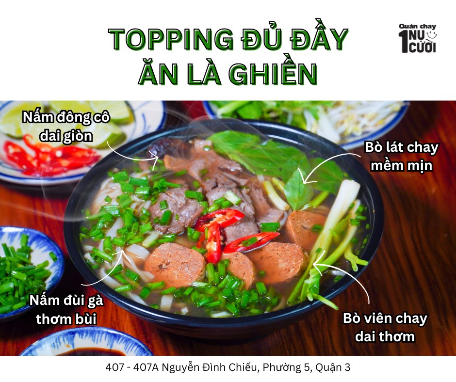 - Địa chị quán chay Quận 3: 407 - 407A Nguyễn Đình Chiểu, Phường 5, Quận 3