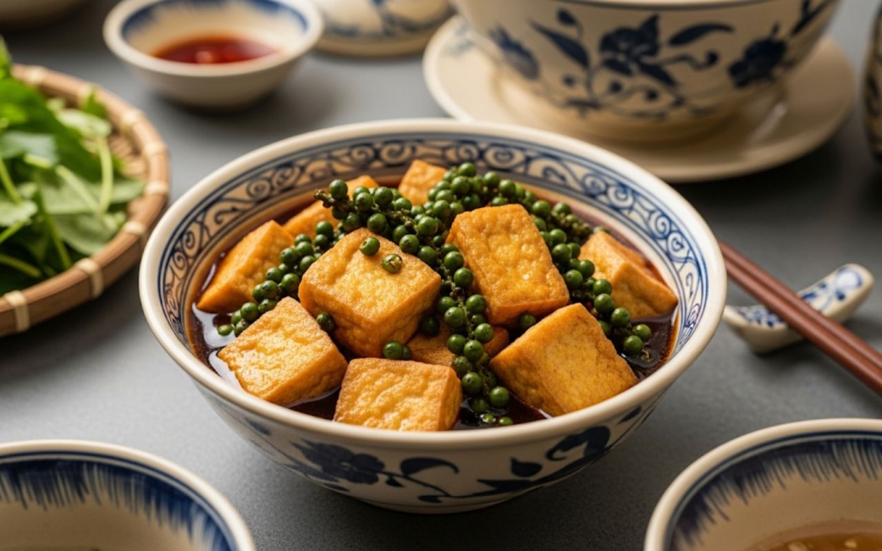 Đây là món mặn "quốc dân" đưa cơm, gây ấn tượng bởi vị cay nồng ấm của tiêu và sự mềm béo của đậu hũ.
