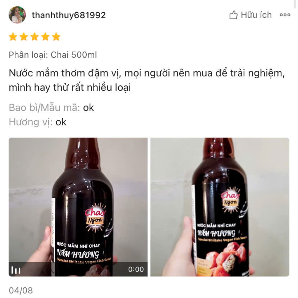 - Chị Thủy: "Nước mắm thơm đậm vị, mọi người nên mua để trải nghiệm, mình hay thử rất nhiều loại.”