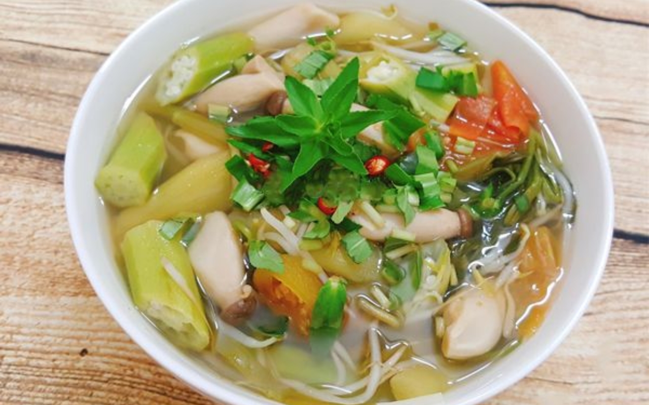 Canh chua chay là món ăn thanh mát và dễ làm, đặc biệt phù hợp trong những bữa tiệc vào mùa hè. Với các nguyên liệu như cà chua, dứa, đậu hũ, nấm và rau thơm, món canh này mang đến sự kết hợp hoàn hảo giữa vị chua thanh mát và vị ngọt của rau củ. Món canh này sẽ làm dịu bớt sự nặng nề của các món ăn khác trong bữa tiệc.