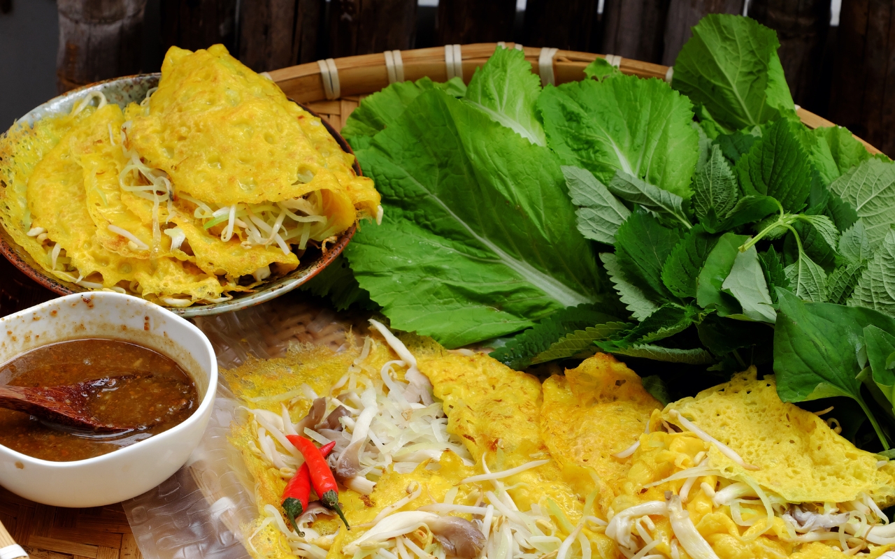 Bánh xèo chay là món ăn vô cùng hấp dẫn và dễ làm cho bữa tiệc. Bánh xèo được làm từ bột gạo, nhân gồm đậu xanh, nấm, rau sống và đậu hũ chiên giòn. Khi chiên lên, bánh có lớp vỏ giòn rụm, nhân bên trong mềm mịn, tạo nên một hương vị tuyệt vời. Món này ăn kèm với nước mắm chay hoặc tương ớt sẽ càng ngon hơn.