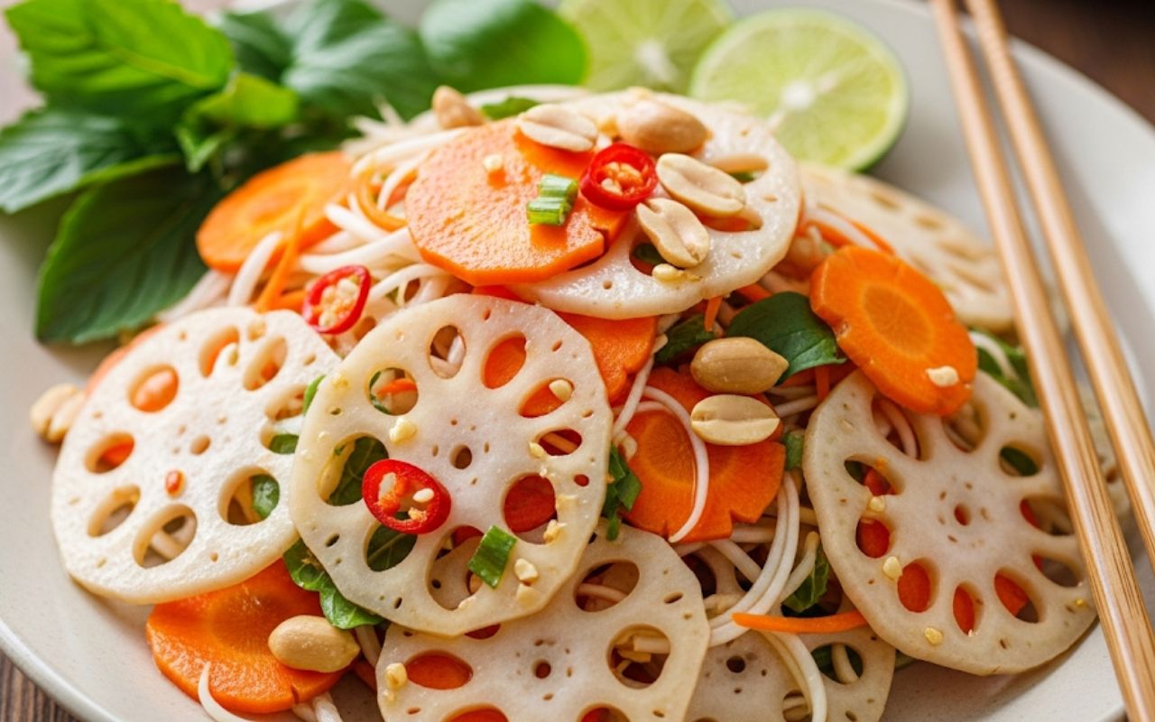 Nộm củ sen chay là món ăn nhẹ nhàng, bổ dưỡng và rất dễ làm, mang đến hương vị tươi mát, thanh thoát.