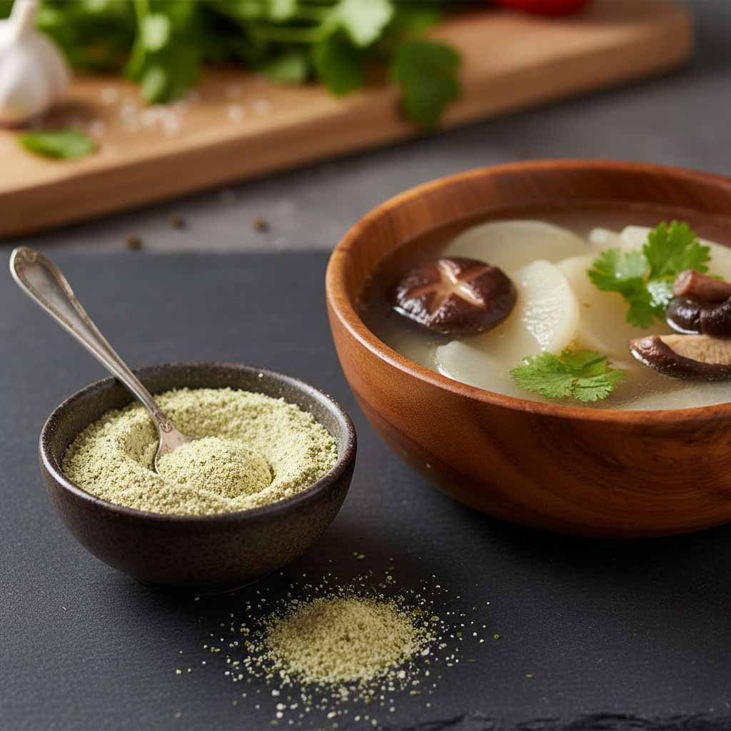 Bột Nêm Cải Xoăn là sản phẩm gia vị, đặc biệt được làm từ nước cốt rau cải xoăn cùng nhiều nguyên liệu tự nhiên khác. Bột Nêm Cải Xoăn đậm đà, thơm ngon với hương vị rau cải xoăn, giúp cho việc nấu ăn đơn giản, nhanh và ngon hơn. Có thể dùng nấu Chay hoặc Mặn.