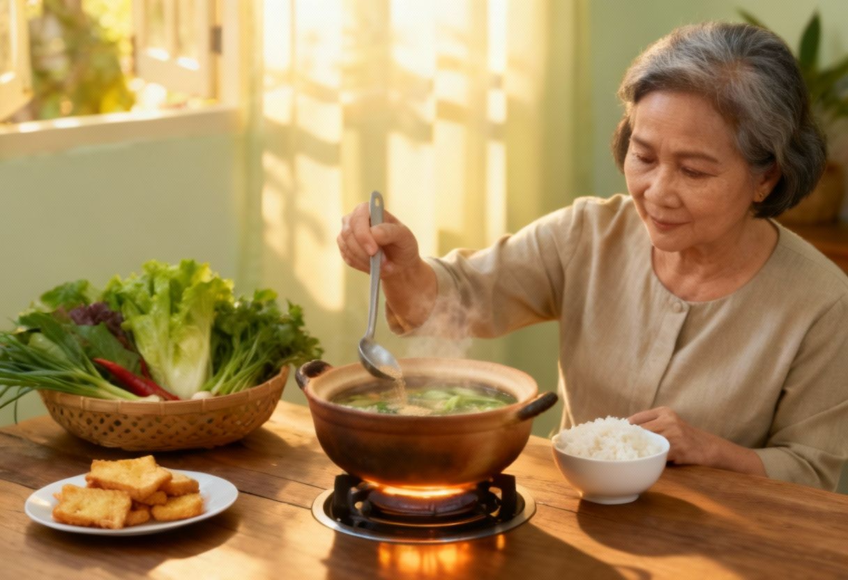 Vị ngon ấy không đến từ gia vị nhân tạo, mà từ sự cân bằng tự nhiên của rau củ – thanh mà đậm, nhẹ mà vẫn tròn vị.
