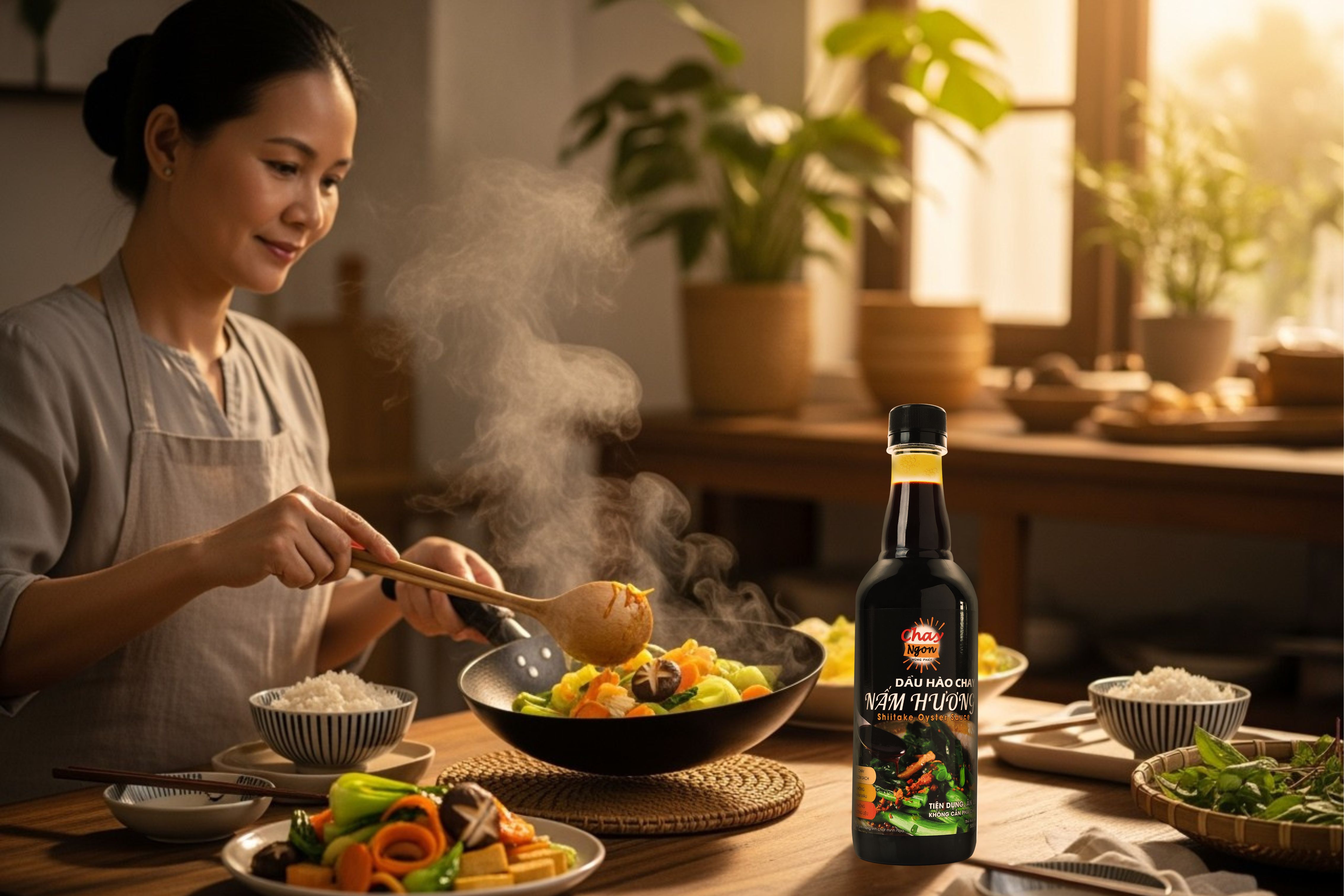 Từ Gian Bếp Việt – Hành Trình Tạo Nên Giọt Dầu Hào Chay Nấm Hương Đặc Biệt